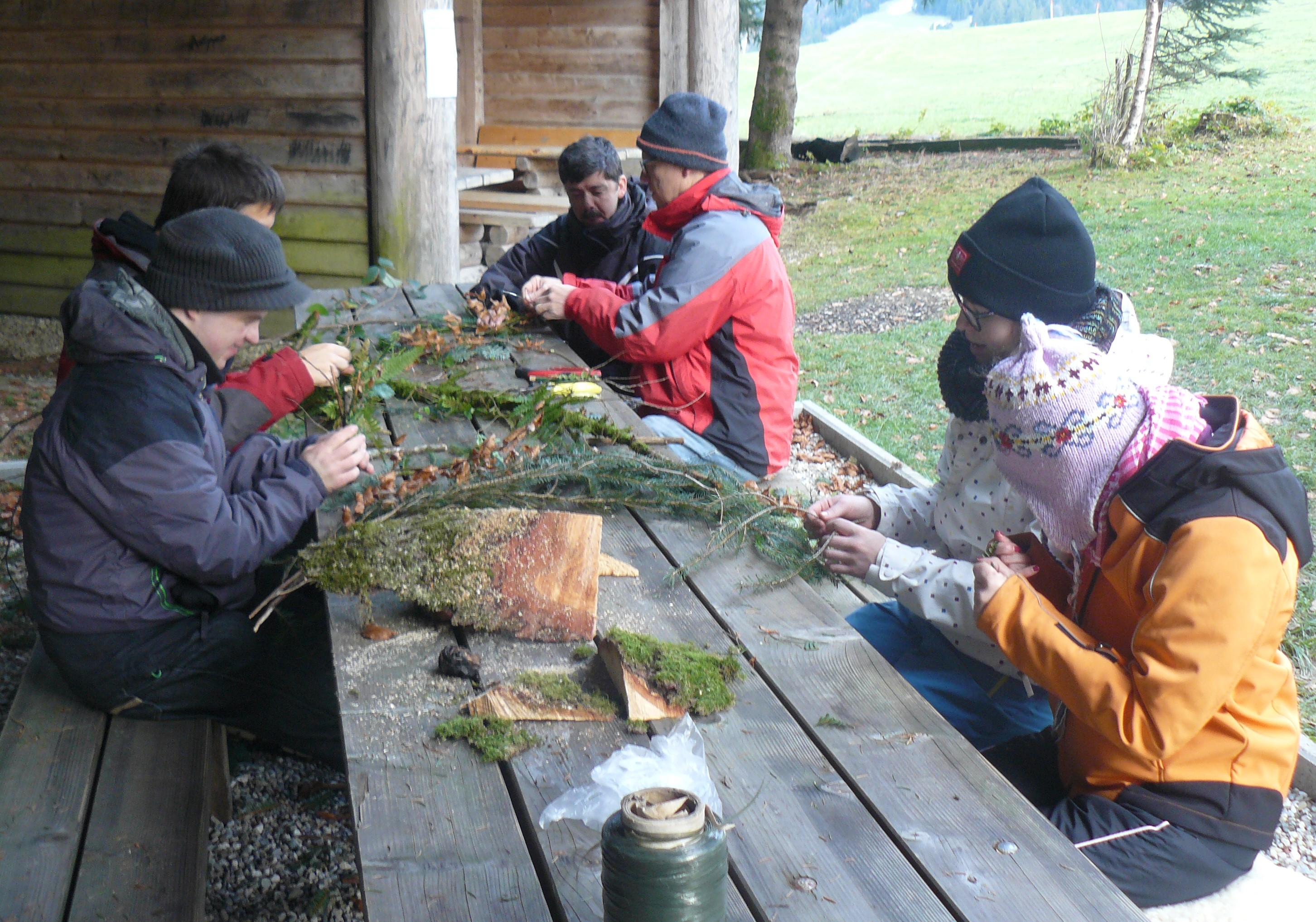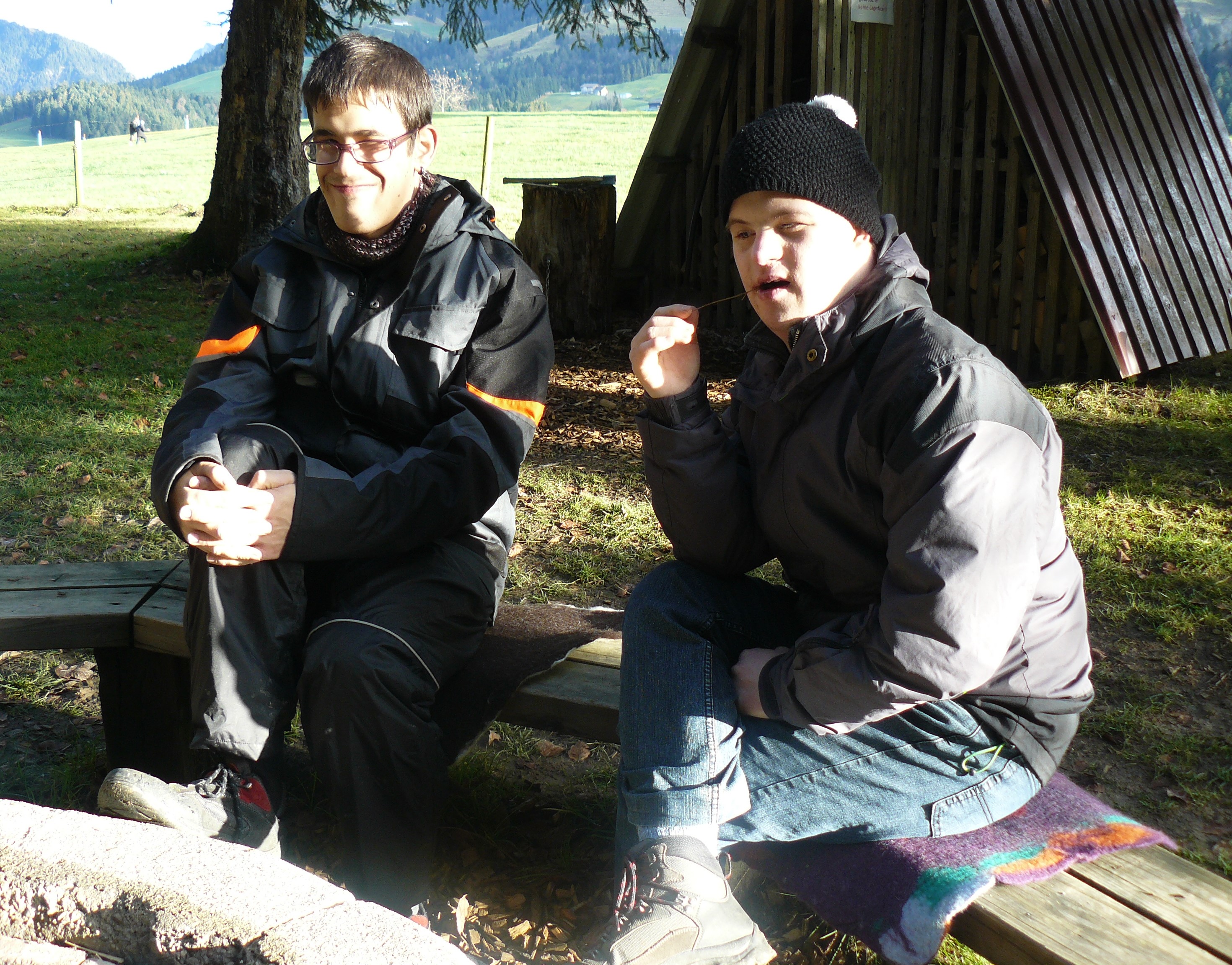 Im Wald gibt es viel gemeinsam zu erleben. Das Wetter und die Jahreszeiten sind gut spürbar, weswegen eine gute Ausrüstung wichtig ist. Es macht Spass bei jeder Witterung draussen zu sein. Beim Holzhacken, Anfeuern und Zvieri vorbereiten unterstützen sich die Bewohnenden gegenseitig. Das gemeinsame Arbeiten wird sehr genossen. Oft gibt es noch genügend Zeit für einen Spaziergang.